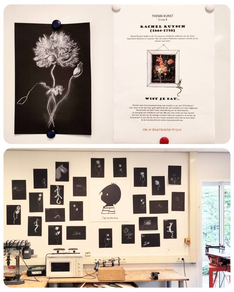 Wat een fijne start heb ik gemaakt met de kinderen van groep 8 (van de GJ. van de Brinkschool in Wageningen) met het thema 'KUNST'. In mijn rol als 'Kinderkunstprofessor' kan ik in drie ochtenden heerlijk de diepte ingaan met hen! We begonnen met wit krijt op zwart papier..👌