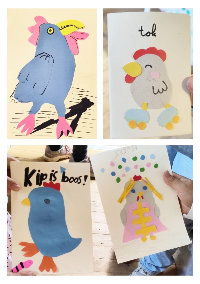 We tekenen 'al knippend' de knuffel 'Kipje' na in verschillende houdingen. Bij de meeste kinderen ontstaat al direct een verhaal en deze wordt op de volgende pagina's uitgetekend. Ik ben benieuwd hoe jullie verhaal verder gaat...!