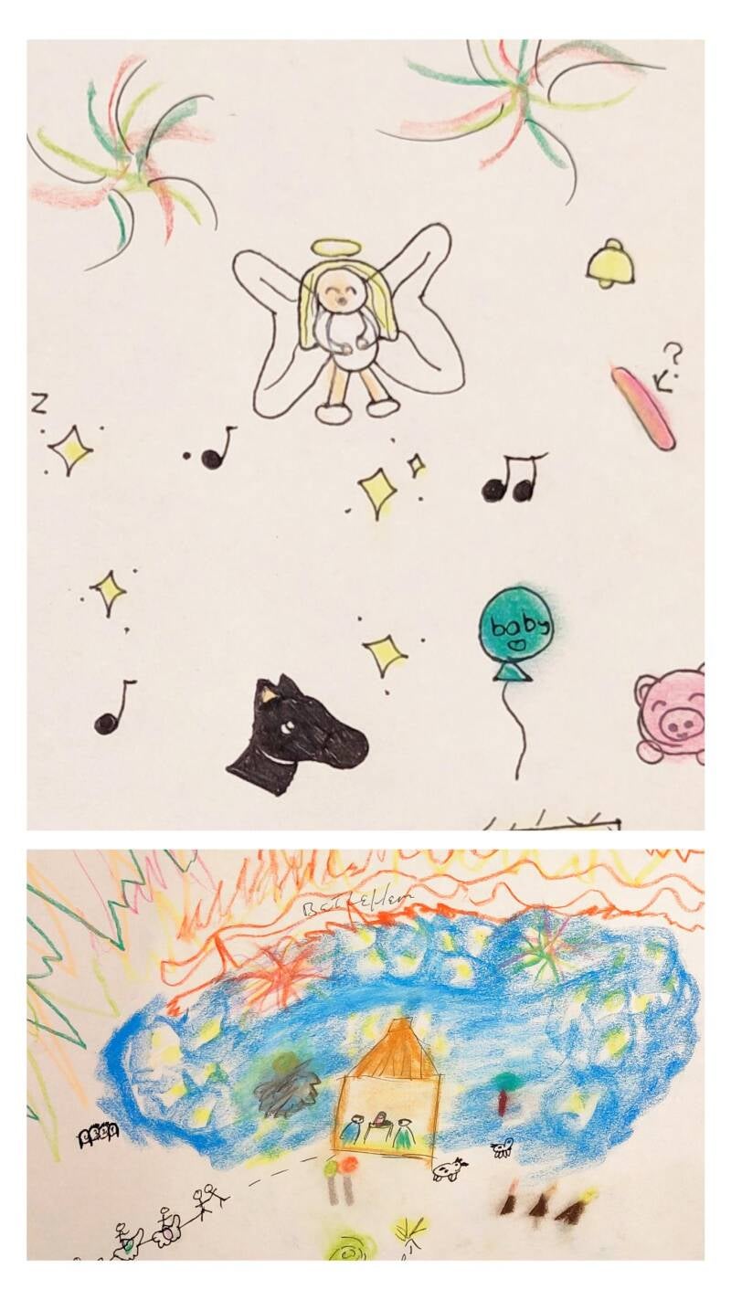 Mooi he?! Deze tekeningen maakten kinderen op Tekenles, terwijl zij luisterden naar de muziek (in combinatie met het kerstverhaal). Een bijzondere ervaring!