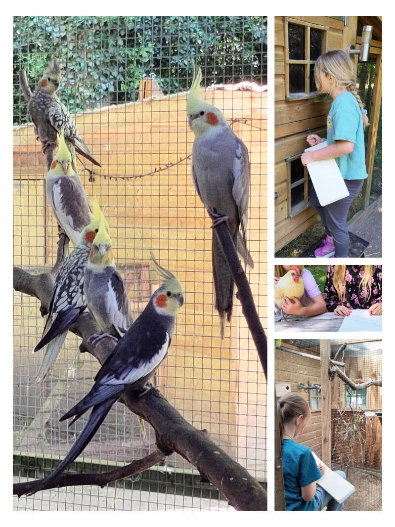 Naast het tekenen is er veel te beleven; we kijken naar de kleuren en bewegingen van de dieren en hoe ze zich gedragen, we voelen hoe de vacht of de veren aanvoelen, we horen de geluiden en ruiken de geuren.